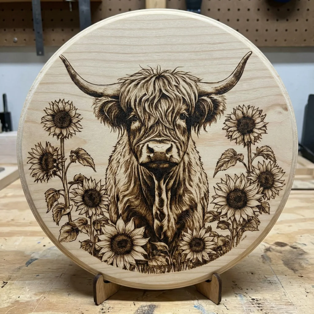 Rustic Highland Cow & Sunflowers Engraved Wood Plaque | Farmhouse Decor | XCS file