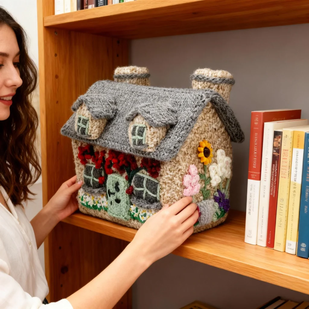 With comprehensive photographs guiding you every step of the way, you’ll love watching your little cottage come to life. Whether for a thoughtful housewarming, a birthday, or simply to add a touch of whimsy to your own space, this knitted cottage box is a project you’ll cherish.